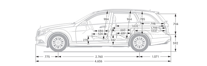 All measurements in millimetres. The dimensions shown are mean values and apply to standard-specification, unladen vehicles.