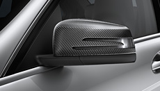 The AMG Exterior Carbon-Fibre package with AMG carbon-fibre exterior mirrors makes a lasting impression while underscoring the sporty ambitions of the C 63 AMG.
