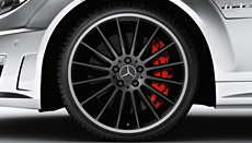 The performance package from the AMG Performance Studio is the epitome of the C 63 AMG's sportiness. The elements composing this package enhance motoring enjoyment and ensure a top-level performance when braking and accelerating. - AMG high-performance brakes with composite brake discs and brake callipers in red for motorsport-level deceleration