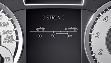 DISTRONIC PLUS helps the driver automatically maintain a specified distance from the vehicle ahead and helps minimise the risk of rear-end collisions by identifying potentially dangerous situations and reacting accordingly. As the sensors can operate between 0.2 and 200 metres the system is also helpful in city traffic or stop-and-go traffic. It can brake the vehicle to a standstill if necessary and also accelerate it again, if confirmed by the driver. In stop-and-go traffic, DISTRONIC PLUS applies the brakes automatically – if necessary, until the vehicle comes to a complete stop. Automatic braking is applied with a deceleration of up to 4 m/s²When the traffic situation improves, DISTRONIC PLUS automatically accelerates back up to the preset speed if the driver presses briefly on the accelerator or flicks the cruise control lever.
