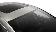 Windscreen with rain sensor Relaxed driving at all times is guaranteed even in poor weather conditions by the windscreen wipers with rain sensor which eliminate manual control of the wiping interval. The system also ensures that the wiping process is not activated too early by individual drops of moisture. The electronically controlled rain sensor detects automatically if the windscreen is wet and controls the wipe interval accordingly when the driver activates the intermittent wiper control function. The sensor is located behind the rear-view mirror on the inside of the windscreen and emits infrared light towards the windscreen pane at a certain angle; the light is reflected differently according to how wet the windscreen is.