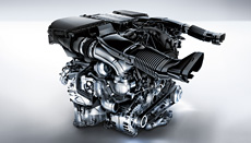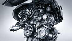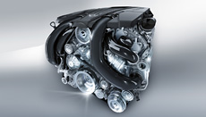 The V6 engines from the BlueDIRECT engine family combine low fuel consumption and correspondingly low CO2 emissions with enhanced dynamic response on a high level. They were developed using lightweight materials throughout and feature stratified petrol injection with piezo injectors, four valves per cylinder as well as adjustable camshafts for the intake and exhaust valves. The following models are available to choose from: E 300, E 350 and E 400:
