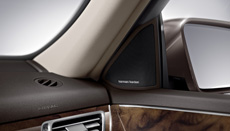 | | Harman Kardon® Logic 7® surround sound system[5] The Harman Kardon® Logic 7® surround sound system with Dolby Digital 5.1 and an output of 610 watts turns every journey into an acoustic experience. Fourteen high-performance speakers and the Logic 7® multi-channel surround sound technology provide a three-dimensional sound impression. The automatic volume control adapts the sound in line with the car’s current speed. A charging function and improved reception as the result of the connection with the exterior antenna round out this equipment feature.