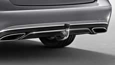 Trailer coupling with ESP® trailer stabilisation, manually folding[3], [5] When not in use, the trailer tow hitch is concealed from sight behind the bumper trim. When necessary, the trailer tow hitch can be folded down under the bumper by means of a lever in the boot and can then be manually folded out to its final positionAn LED next to the release lever goes out once the trailer tow hitch is locked in the correct position The trailer tow hitch is folded back via the release lever in the boot, tooAgain, the LED goes out once the trailer tow hitch is locked in place behind the bumper. In conjunction with the optional COMAND Online multimedia system and the optional reversing camera, a special camera resolution and an additional auxiliary line are available which enable the driver to hitch up a trailer without any outside help.