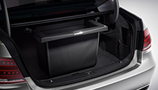 | | Bottle holder, (2) in centre console including flexible bottle holder in the front passenger footwell | | | Spectacles compartment for driver instead of grab handle | | | 2 cup holders in the centre console including flexible bottle holder in the front passenger footwell | | | designo DINAMICA roof lining in alpaca grey | | | designo DINAMICA roof lining in macadamia beige | | | designo DINAMICA roof lining in black | | | designo trim elements in natural bamboo | | | designo trim elements in natural curly maple | | | designo trim elements in black piano lacquer | | | EASY-PACK boot convenience box[5] The variable box with a volume of between 7 and 55 litres increases usage convenience of the boot and is ideally suited for secure, non-slip stowage of smaller items such as laptops, briefcases and items of clothing. The box is permanently integrated in the boot and can be folded together at the touch of a button.
