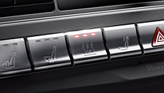 | | Climatised front seats (heating and ventilation), perforated leather The climatised seats improve ride comfort on longer trips and reduce perspiration thanks to a pleasant air flow and selectable seat heating. Fans integrated in the seat upholstery uniformly distribute a flow of air in three intensity levels under the leather backrest and cushion covers. The air flows through the fine perforation and quickly cools down the surface of the seats to a pleasant temperature – even if the vehicle has been heated by intense sunlight for a longer period of time. On cold days you can turn on the three-level adjustable seat heating, which guarantees together with the air flow that wet clothes dry faster.