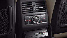The air conditioning in the rear complementing the THERMOTRONIC automatic climate control makes climate control in the rear of the vehicle even better; and it can be controlled by the occupants in the rear. When the automatic climate control is activated, the desired temperature and air outlet speed can be selected using the control unit in the rear. A control unit is located behind the centre armrest for setting the desired temperature and air outlet speed for the centre air outlets. With the aid of the controls, the desired temperature and airflow can be set by the rear passengers.
