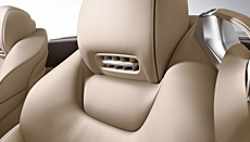 AIRSCARF neck-level heating extends the open-top season by making it possible to drive with an open Vario-roof, even when outside temperatures are low. At the push of a button, small fans on the back of the head restraints draw in air, which is then heated and blown out through a vent in the front of the seat. It warms the neck and neck like an invisible scarf.