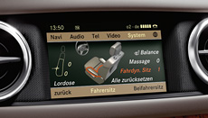 The active multicontour seat adjusts particularly well to individual seating needs. It continually adjusts itself to the driving situation, massages the back muscles and reduces the risk of injury in the event of an accident. Depending on the steering angle, lateral acceleration and speed, the air cushions in the seat side bolsters are adjusted pneumatically in two stages so as to give excellent lateral support even when driving dynamically. After the dynamic function is switched off the previously selected pressure in the side chambers is automatically reset symmetrically.Other features of the package include: - Extremely easy on the back: the massage function reduces symptoms of fatigue in the back muscles on long journeys. It supports the principle of "dynamic sitting" – as recommended by orthopaedic specialists.