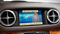 The TV tuner makes it possible to watch television during driving breaks. The receiver unit processes both analogue and digital signals and is controlled using the COMAND or COMAND Online control and display system, whose display is positioned in the driver’s central field of vision and also shows the image. Sound output is via the vehicle's speaker system. The receiving aerial is integrated in the rear window. At speeds above approx. 6 km/h, the image is switched off for safety reasons and reappears when the speed falls below this limit.