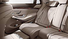 First-Class Rear with continuous business console and temperature-controlled cup holder (optional)[2] The continuous Business console transforms the rear into a mobile office with two individual seats. Two USB ports, two 12-volt sockets and the temperature-controlled cup holder as well as optional features such as folding tables, make for a comfortable travelling and working environment. The elements at a glance: