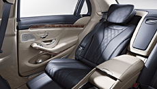 Executive seat on the front-passenger side with thigh support (optional)[2] With the Executive seat the rear-seat passenger behind the front-passenger seat can enjoy even long journeys in absolute relaxation. The seat can recline into a comfortable lying positing at the push of a button. The combination of legrest and footrest creates a comfortable bed. In conjunction with the Chauffeur package the reclined position of the outer rear seat behind the front passenger can be further extended if there are breaks in the journey. The head restraint for the front passenger seat can be removed and the seat back folded completely down, in this way extending the reclining seat to the front.