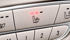 Climate-controlled seats for driver and front passenger (optional) The active ventilation function of the climate-controlled seats rapidly cools the seat surfaces to a pleasant temperature to ensure well-balanced seating comfort. In cold weather conditions the on-demand seat heating provides cosy warmth as required. Fans integrated in the seat upholstery uniformly distribute a flow of air in three intensity levels under the leather backrest and cushion covers. The air flows through the fine perforation and quickly cools the surface of the seats to a pleasant temperature – even if the vehicle has been heated by an intense amount of sunlight for a longer period of time.
