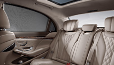 Sun Protection package (optional) The electrically operated roller sun blinds for the rear window and rear side windows enable the passengers to shield themselves from direct sunshine and prying eyes. The view to the outside is maintained. The roller blind for the rear window is unobtrusively mounted on the parcel shelf and can be conveniently operated at the push of a button from the driver's or front passenger's seat. Thanks to perforations in the blind material, there is practically no sight restriction from inside the vehicle.