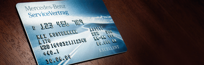 Any service that you need can be paid for quickly and easily with your service contract card. If your vehicle needs a service, just show your card and any Mercedes-Benz service outlet in your own country or abroad will be only too happy to offer expert help. The card is one of the services provided automatically and free of charge as soon as you sign your service contract with us. It’s only valid for the vehicle shown on the card – ensuring that it can’t be misused if you lose it.*